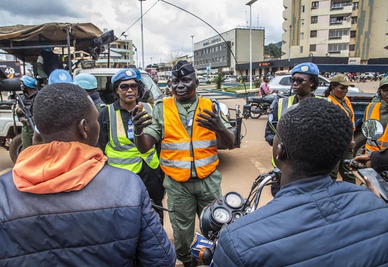 Police de la MINUSCA en patrouille conjointe à Bangui